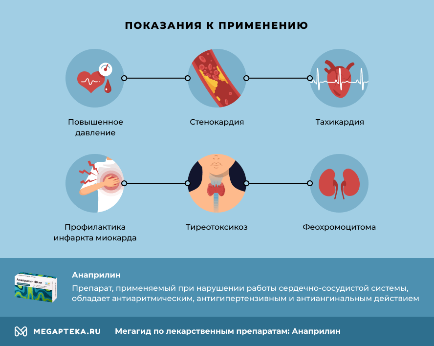 Когда подходит бета-блокатор? Показания к применению Анаприлина следующие: