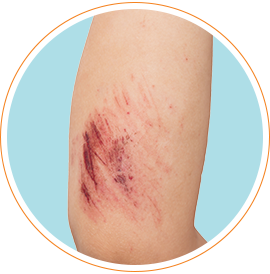 При контакте с твердой и шершавой поверхностью (к примеру, после падения на асфальт, бетон, брусчатку можно повредить ногу, руку и другие части тела).