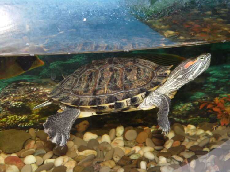 Для красноухих черепах важно иметь свободный доступ к берегу, на участке суши она сможет отдохнуть и погреться, это требование относится ко всем особям.