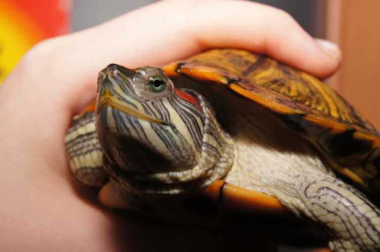 В первую очередь детям нужно объяснить, что трогать животное, которое не идёт на контакт, нельзя. В особенности если домашний питомец находится в интересном положении. Не следует дразнить красноухую черепаху, подставляя палец к её морде, так как животное обязательно укусит. Беря рептилию из террариума, нужно быть предельно осторожным, чтобы не допустить царапин когтями черепахи.