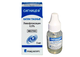 - Антибиотики местного действия: Ципромед , Сигницеф , Л-Оптик Ромфарм, Левофлоксацин , Эритромицин .