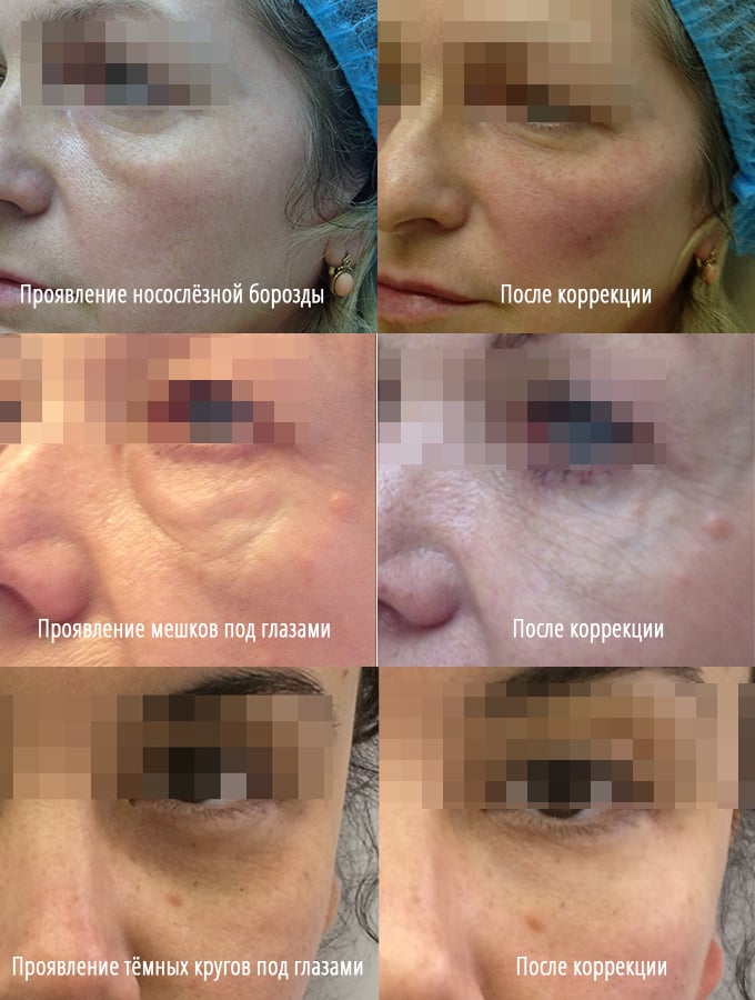 Про возрастных проявлениях проблемы необходим определённый уход в области нижних век для пролонгирования эффекта контурной пластики.