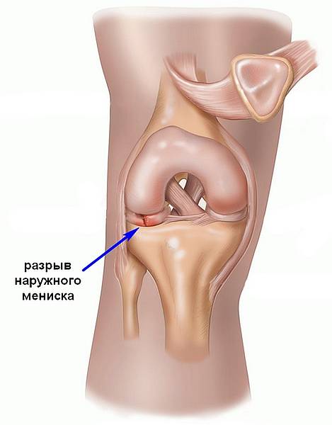 - Повреждение наружного мениска.