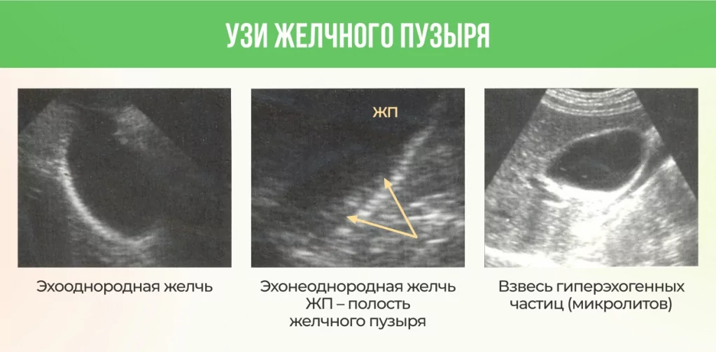 Поскольку зерна осадка изменяют нормальную желчь, мы видим включения на УЗИ.